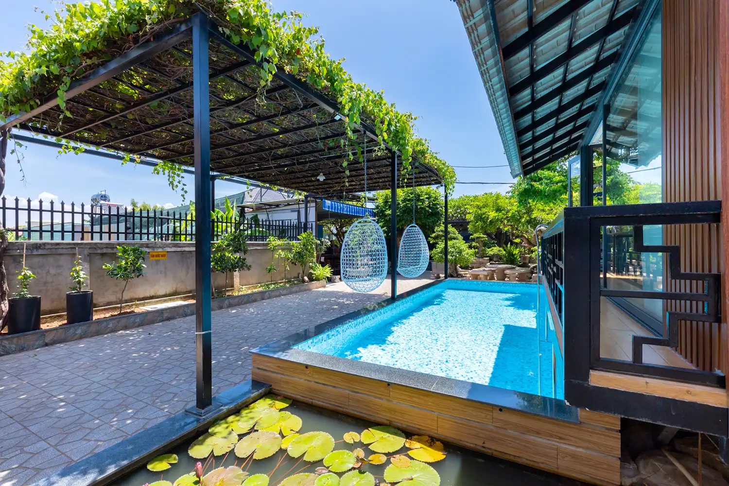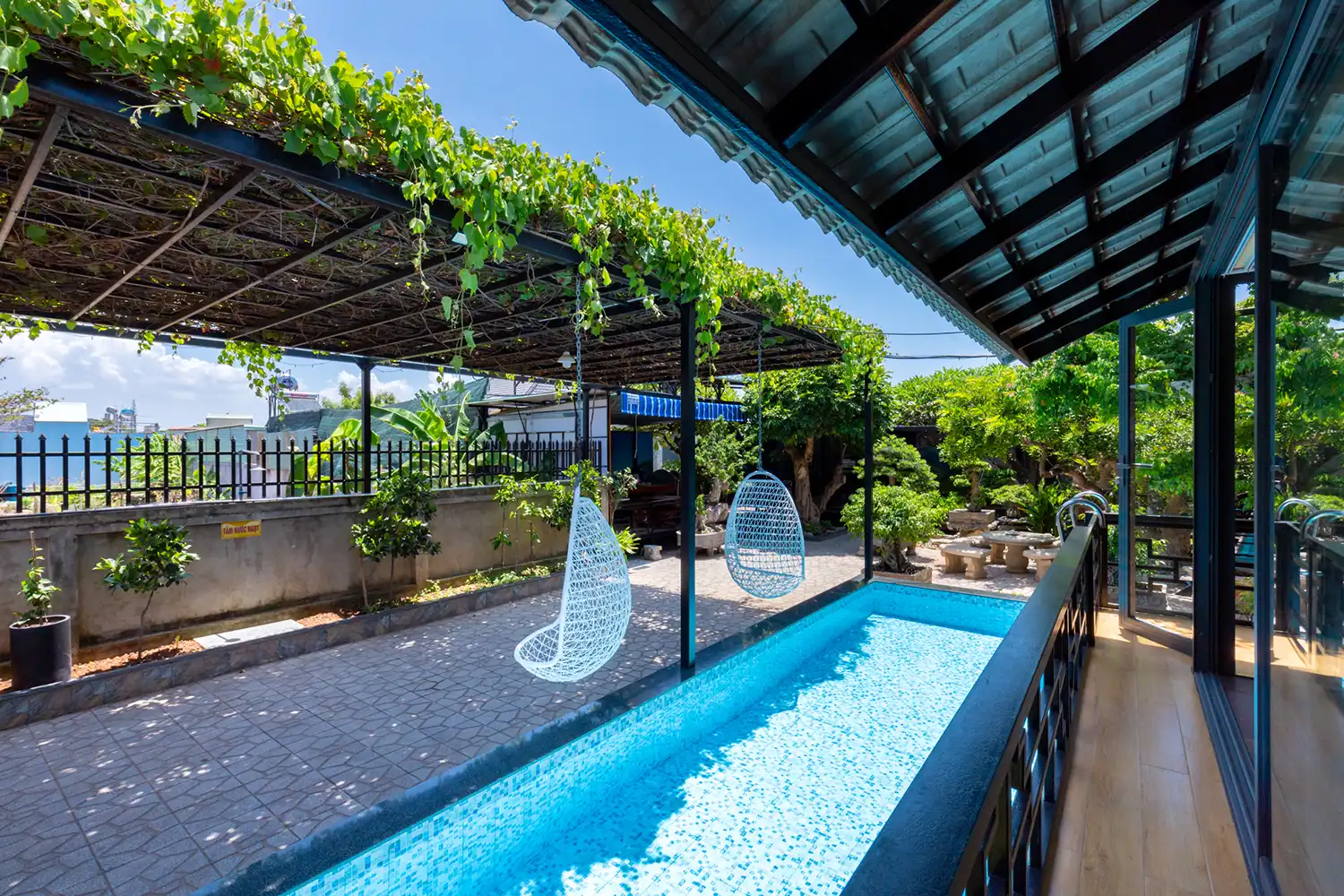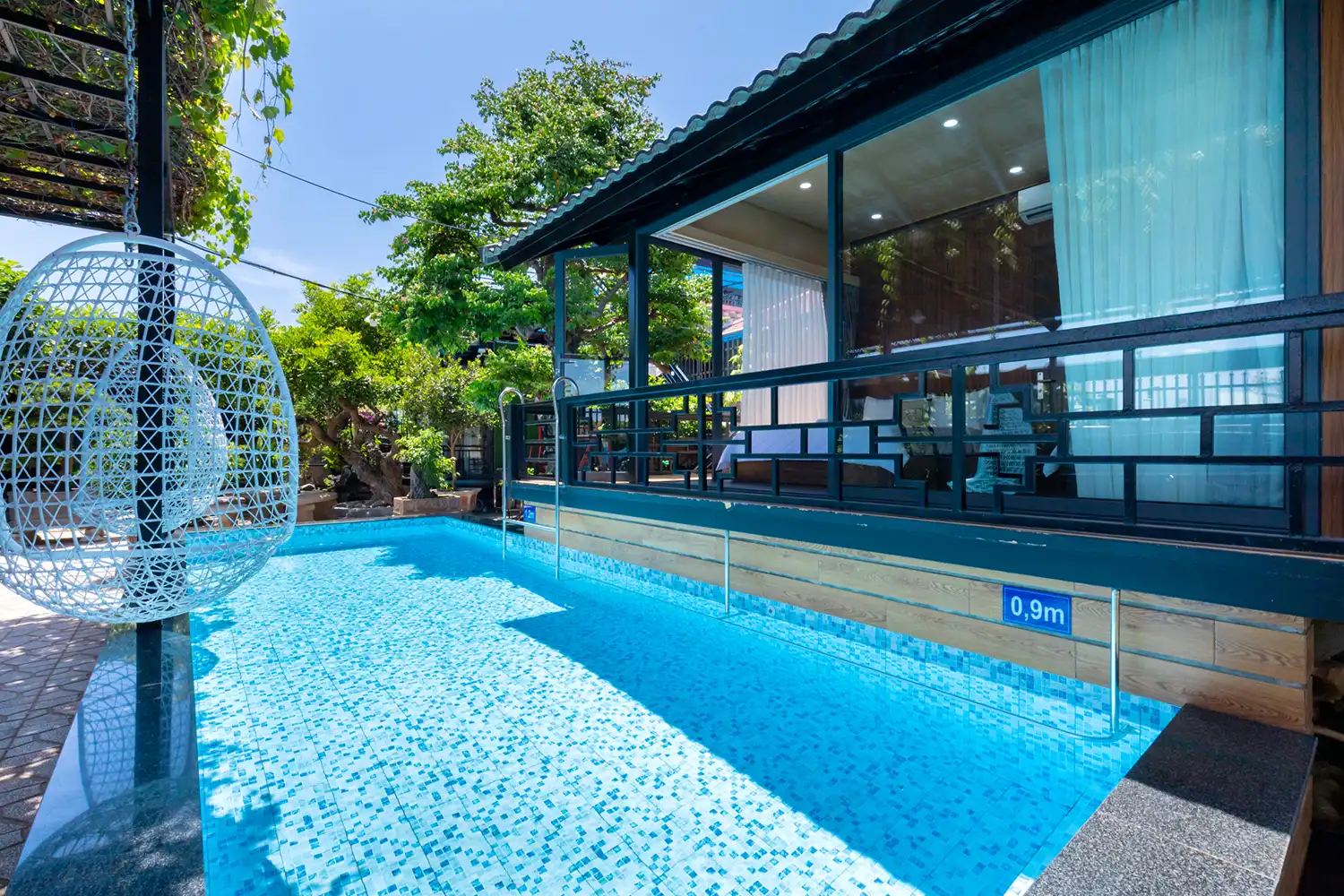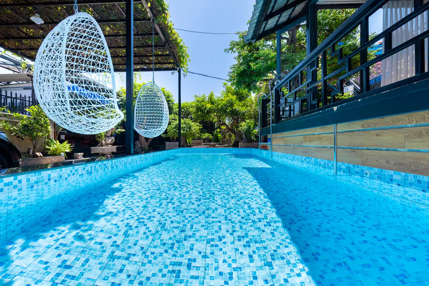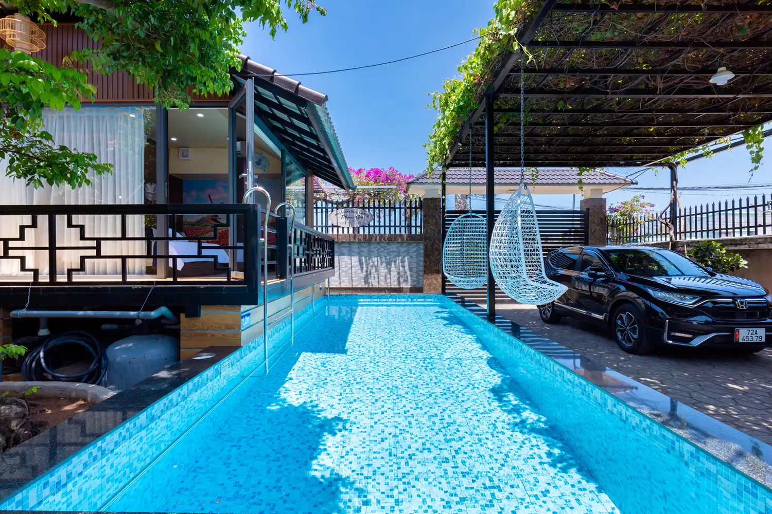 ” Villa sân vườn nghỉ dưỡng PHÙNG GIA tọa lạc tại số 5 đường Nguyễn Đình Tứ, Phường 10, Thành Phố Vũng Tàu, cách bãi tắm Thủy Tiên 5 phút đi bộ. Nghỉ dưỡng tại đây, buổi sáng bạn có thể đi bộ ra bãi Thủy Tiên ngắm bình minh và tắm biển, rồi trở về tắm ở bể bơi nhà mình, tiếp đến là tự tay làm đồ ăn sáng rồi đu đưa trên ghế mây cafe ngắm vườn cây cảnh cùng bầy cá Koi … . Chiều tối là thời điểm lý tưởng để ngắm hoàng hôn ở bãi trước, bạn có thể đi sớm hơn để thưởng thức các món hải sản tươi sống ở các nhà hàng trung tâm rồi CĂN giờ để ra bãi trước ngồi cafe hoặc đi dạo dọc bờ kè để ngắm hoàng hôn … Thật Sảng Khoái “