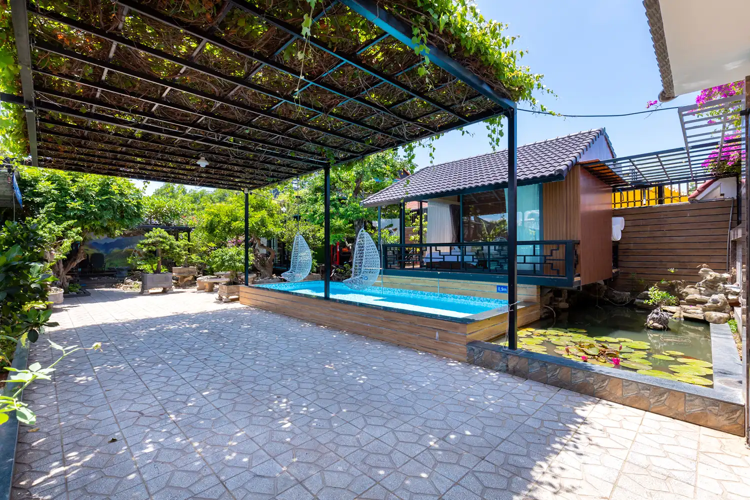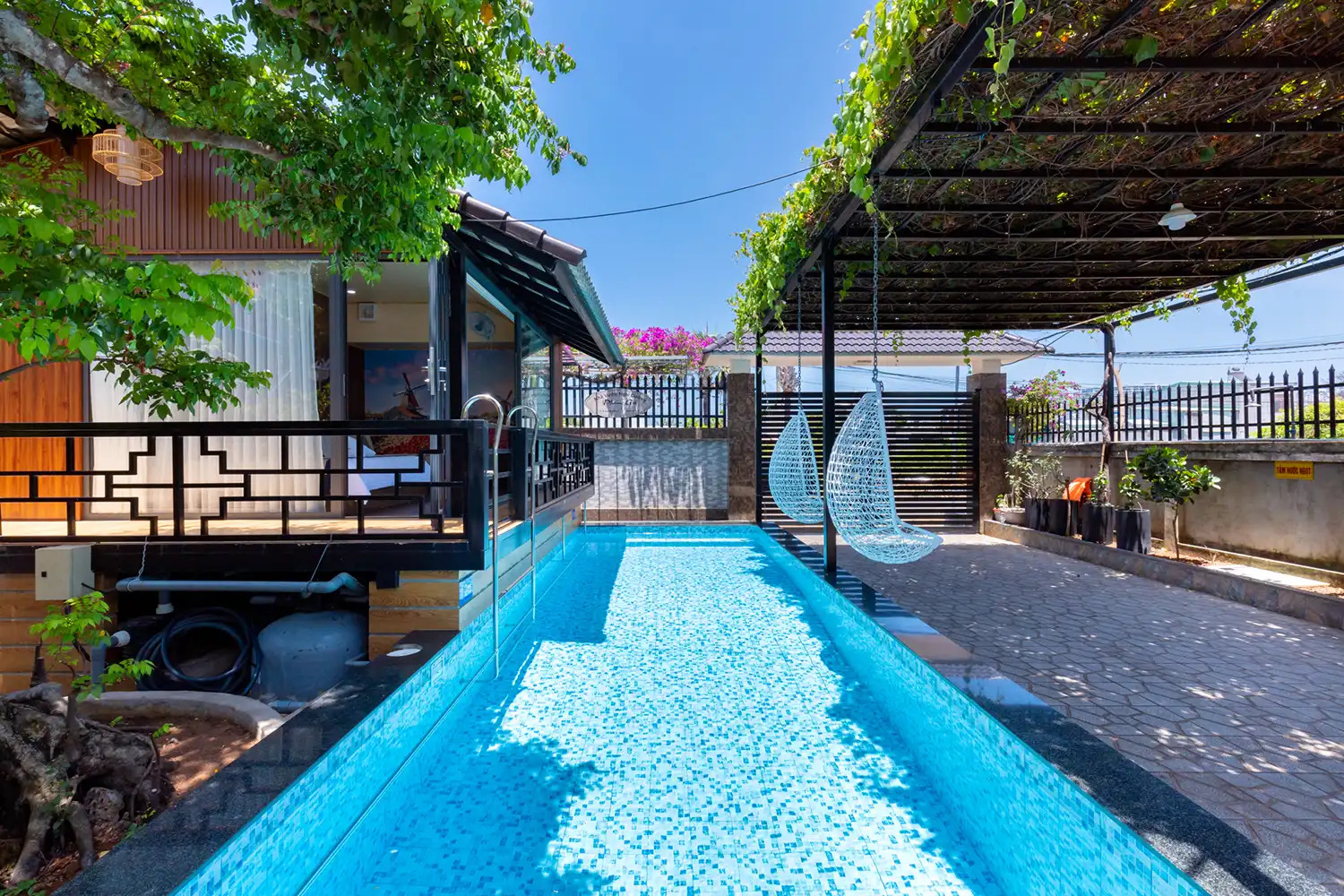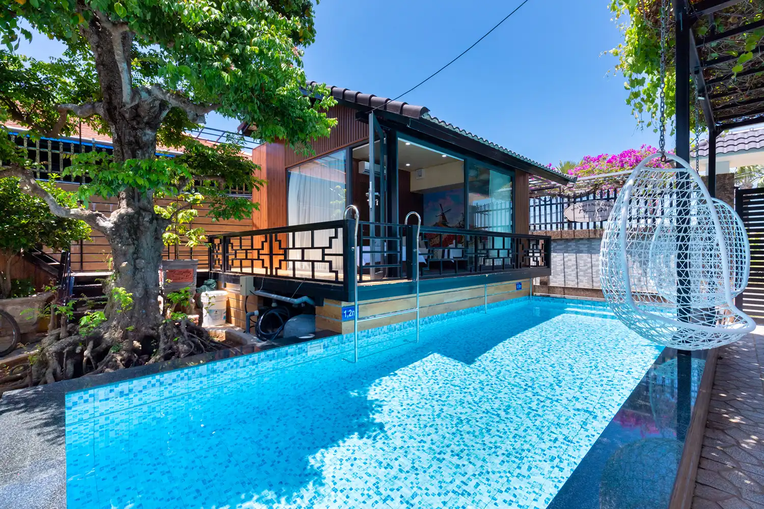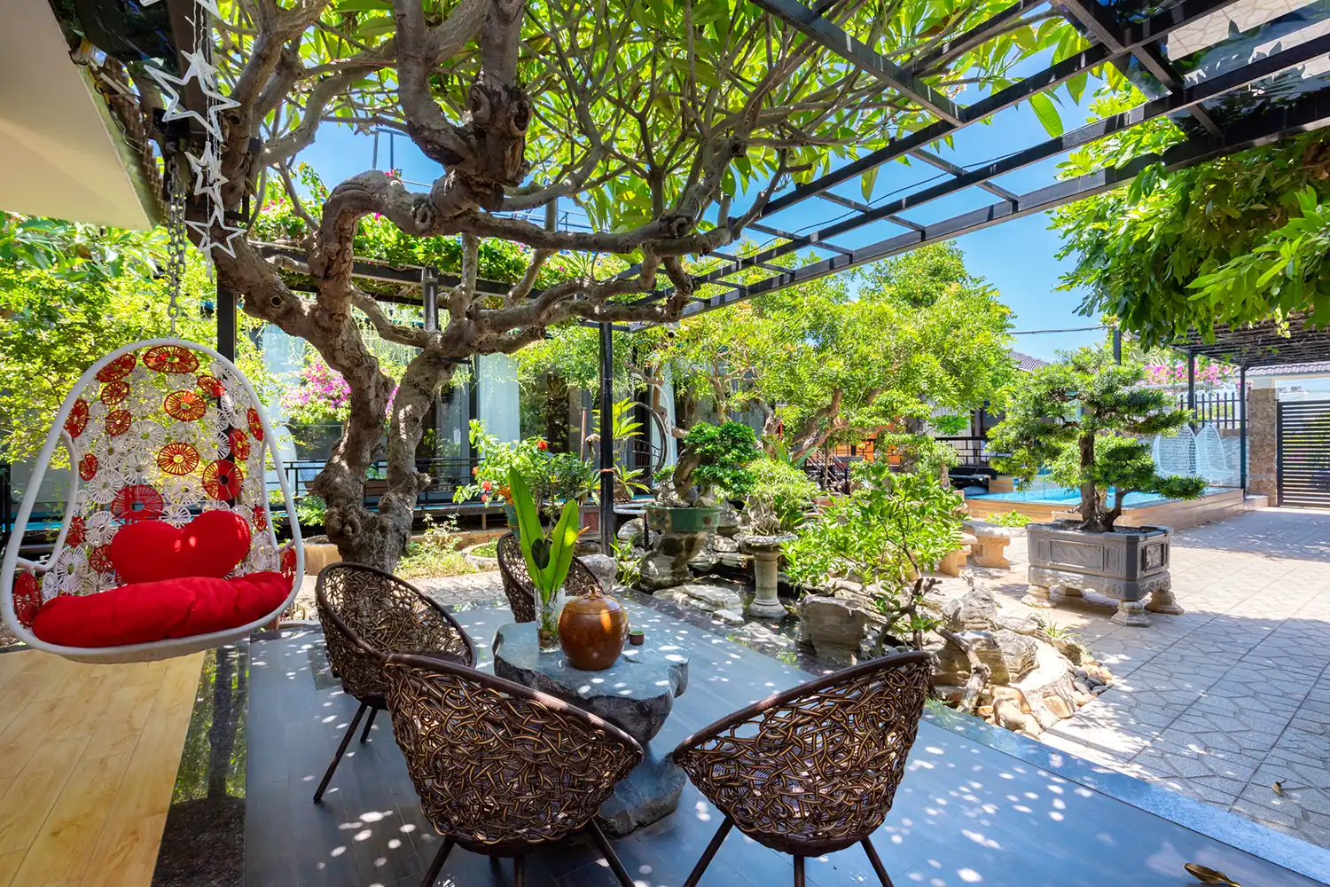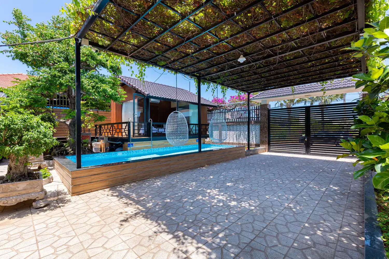 ” Villa sân vườn nghỉ dưỡng PHÙNG GIA tọa lạc tại số 5 đường Nguyễn Đình Tứ, Phường 10, Thành Phố Vũng Tàu, cách bãi tắm Thủy Tiên 5 phút đi bộ. Nghỉ dưỡng tại đây, buổi sáng bạn có thể đi bộ ra bãi Thủy Tiên ngắm bình minh và tắm biển, rồi trở về tắm ở bể bơi nhà mình, tiếp đến là tự tay làm đồ ăn sáng rồi đu đưa trên ghế mây cafe ngắm vườn cây cảnh cùng bầy cá Koi … . Chiều tối là thời điểm lý tưởng để ngắm hoàng hôn ở bãi trước, bạn có thể đi sớm hơn để thưởng thức các món hải sản tươi sống ở các nhà hàng trung tâm rồi CĂN giờ để ra bãi trước ngồi cafe hoặc đi dạo dọc bờ kè để ngắm hoàng hôn … Thật Sảng Khoái “