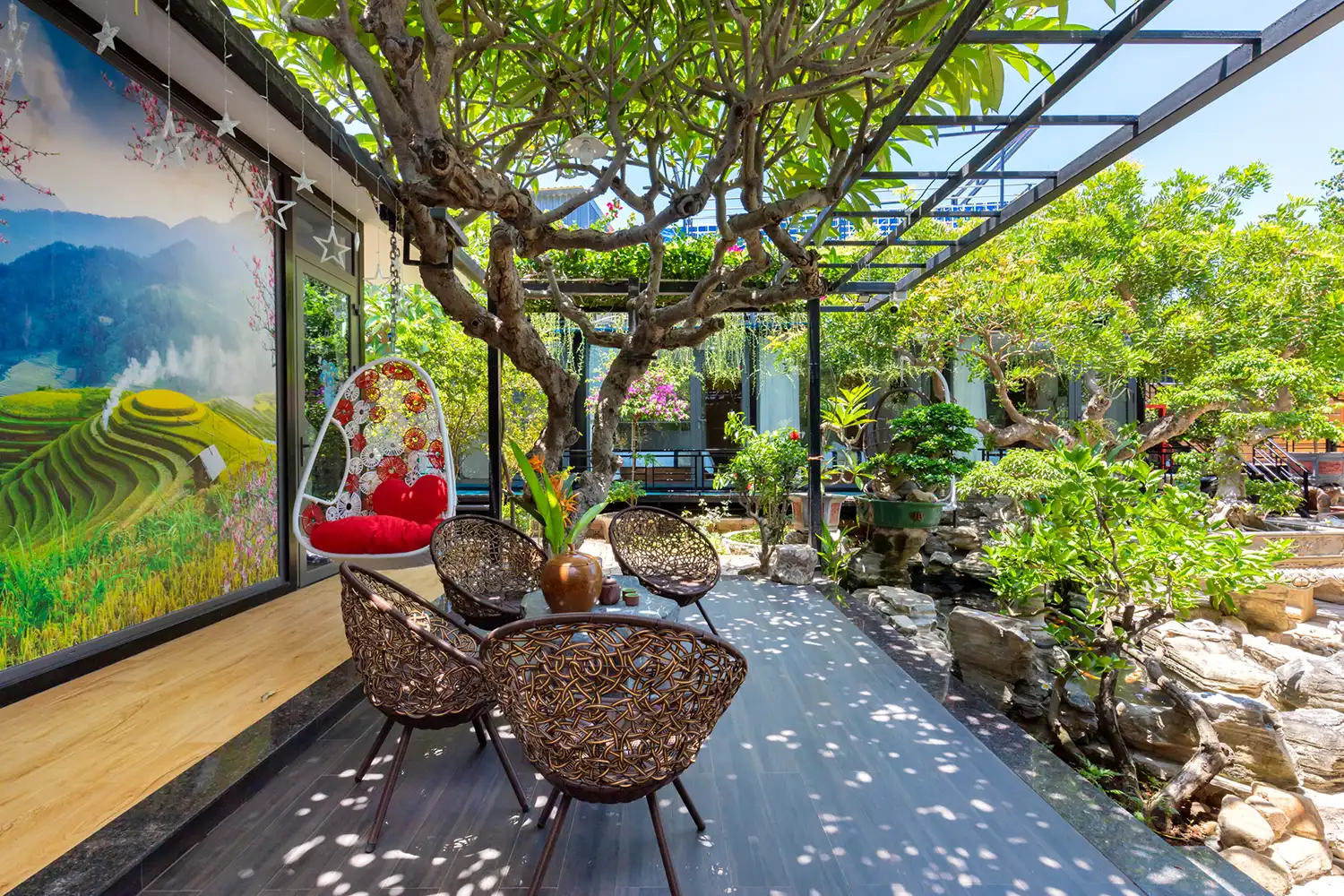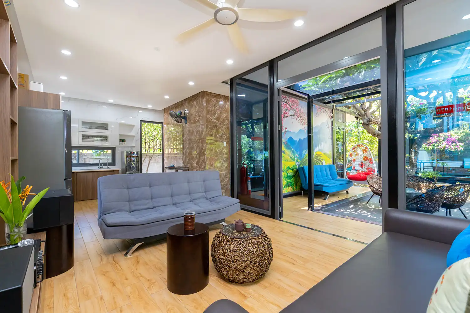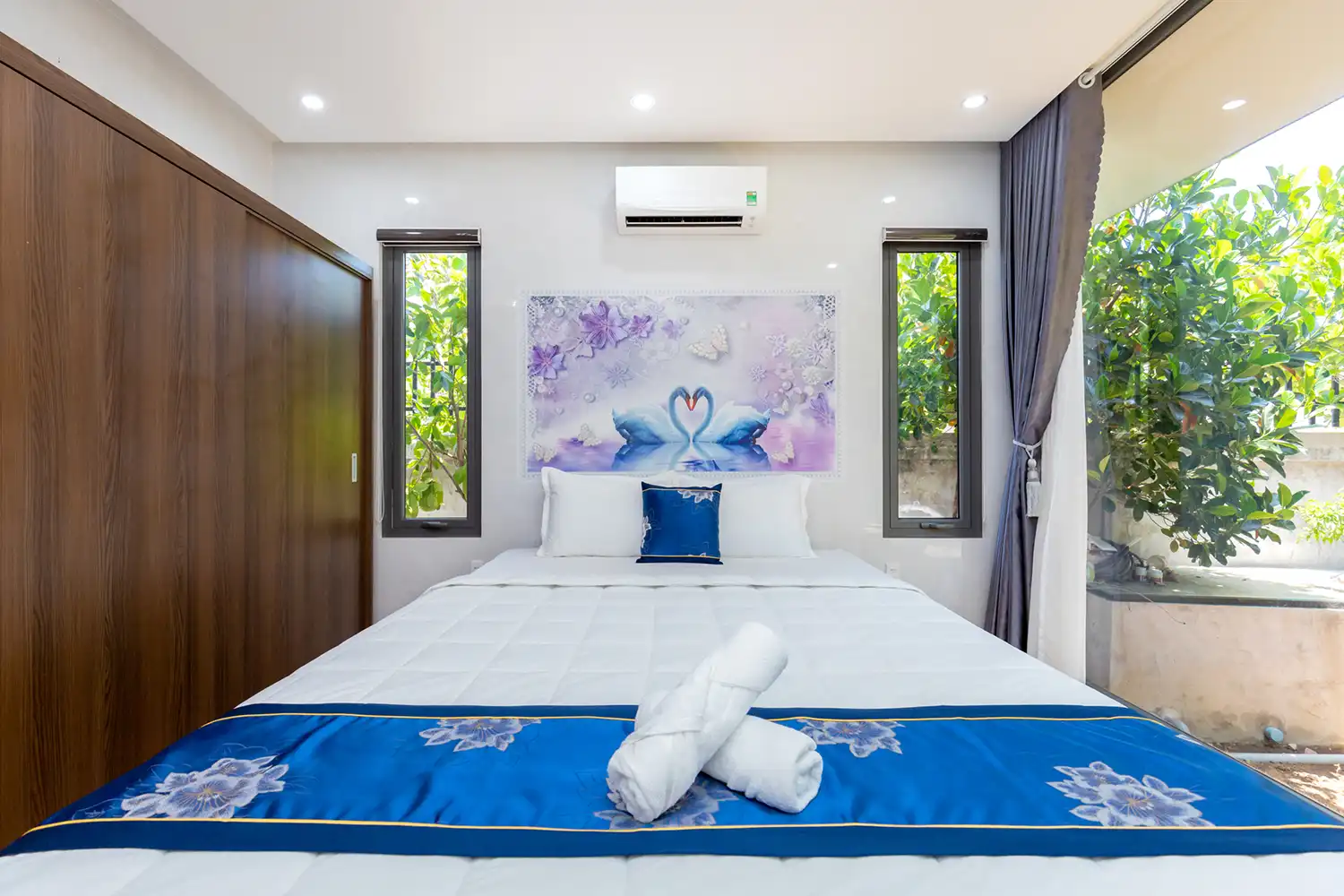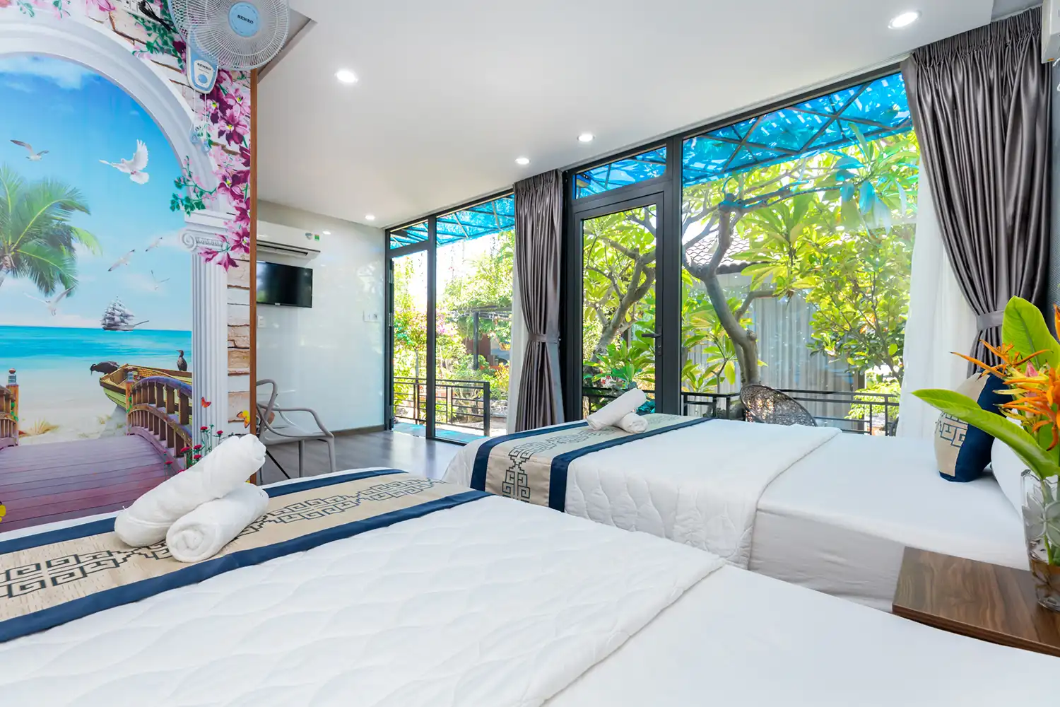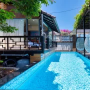 ” Villa sân vườn nghỉ dưỡng PHÙNG GIA tọa lạc tại số 5 đường Nguyễn Đình Tứ, Phường 10, Thành Phố Vũng Tàu, cách bãi tắm Thủy Tiên 5 phút đi bộ. Nghỉ dưỡng tại đây, buổi sáng bạn có thể đi bộ ra bãi Thủy Tiên ngắm bình minh và tắm biển, rồi trở về tắm ở bể bơi nhà mình, tiếp đến là tự tay làm đồ ăn sáng rồi đu đưa trên ghế mây cafe ngắm vườn cây cảnh cùng bầy cá Koi … . Chiều tối là thời điểm lý tưởng để ngắm hoàng hôn ở bãi trước, bạn có thể đi sớm hơn để thưởng thức các món hải sản tươi sống ở các nhà hàng trung tâm rồi CĂN giờ để ra bãi trước ngồi cafe hoặc đi dạo dọc bờ kè để ngắm hoàng hôn … Thật Sảng Khoái “