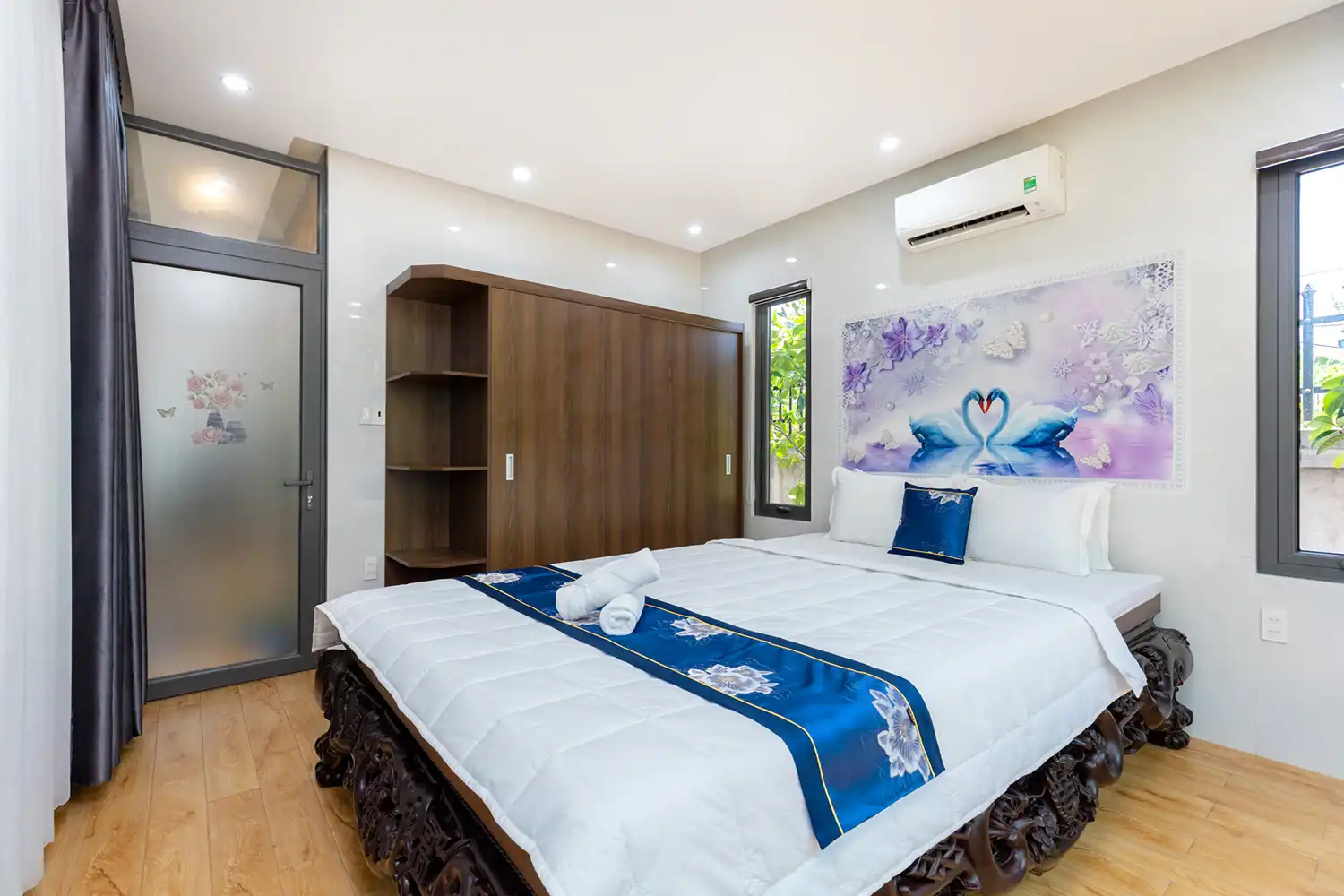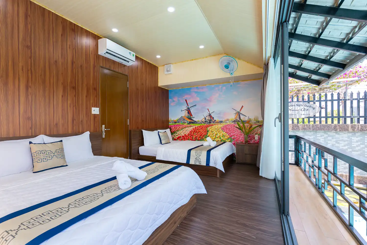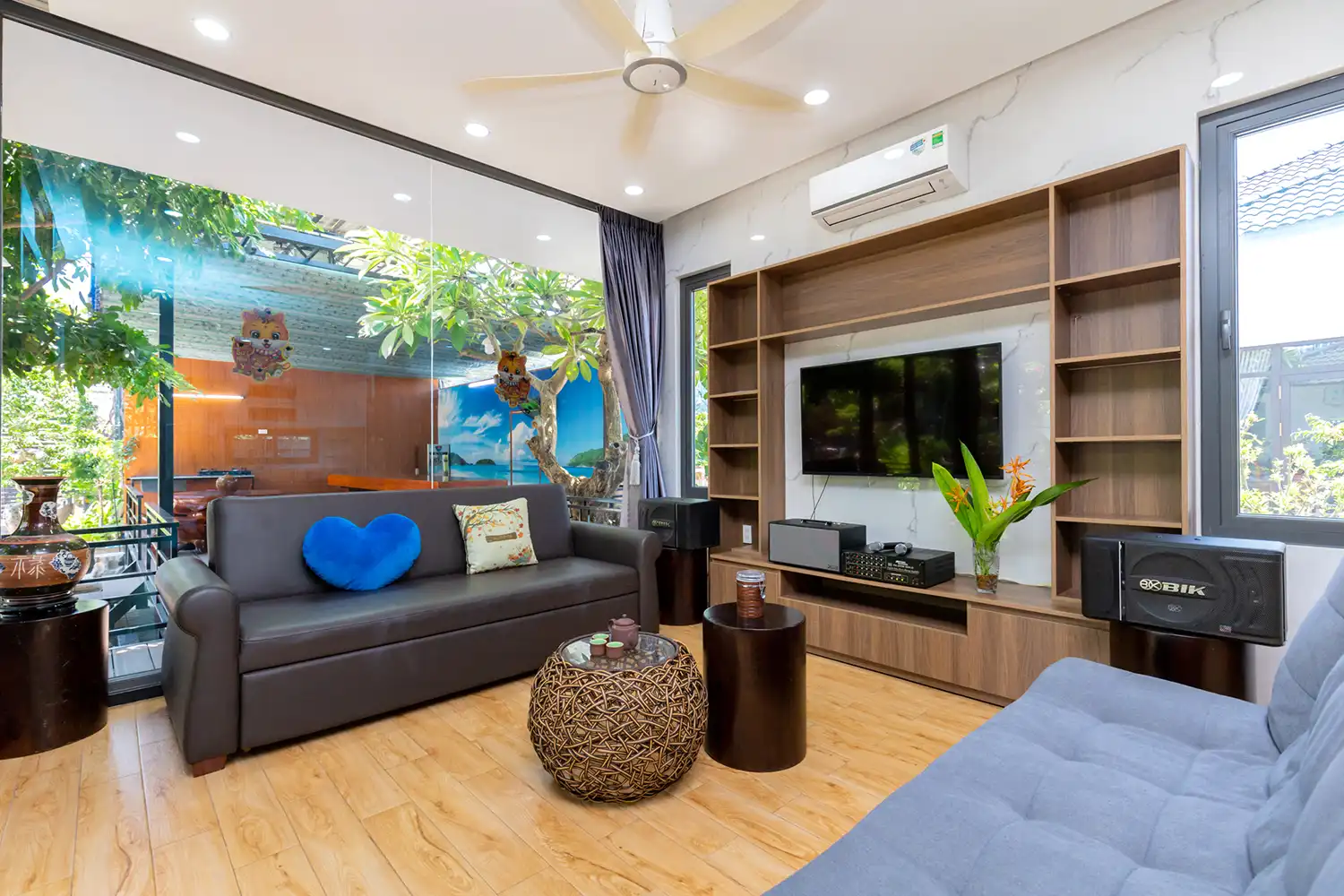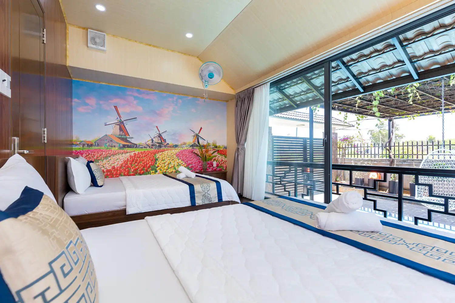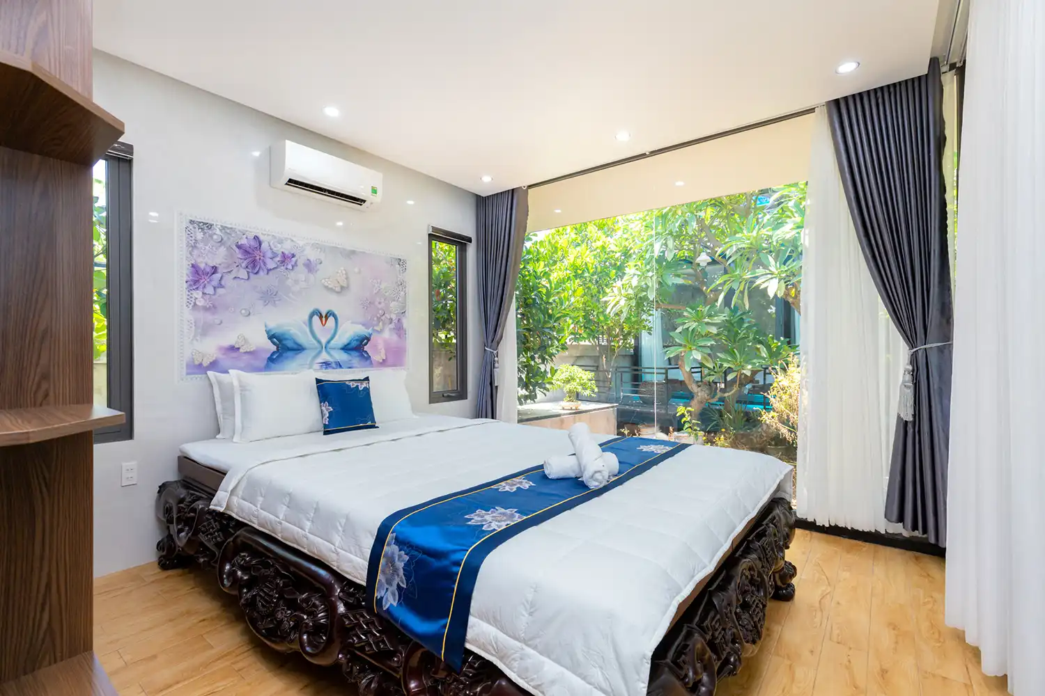 ” Villa sân vườn nghỉ dưỡng PHÙNG GIA tọa lạc tại số 5 đường Nguyễn Đình Tứ, Phường 10, Thành Phố Vũng Tàu, cách bãi tắm Thủy Tiên 5 phút đi bộ. Nghỉ dưỡng tại đây, buổi sáng bạn có thể đi bộ ra bãi Thủy Tiên ngắm bình minh và tắm biển, rồi trở về tắm ở bể bơi nhà mình, tiếp đến là tự tay làm đồ ăn sáng rồi đu đưa trên ghế mây cafe ngắm vườn cây cảnh cùng bầy cá Koi … . Chiều tối là thời điểm lý tưởng để ngắm hoàng hôn ở bãi trước, bạn có thể đi sớm hơn để thưởng thức các món hải sản tươi sống ở các nhà hàng trung tâm rồi CĂN giờ để ra bãi trước ngồi cafe hoặc đi dạo dọc bờ kè để ngắm hoàng hôn … Thật Sảng Khoái “