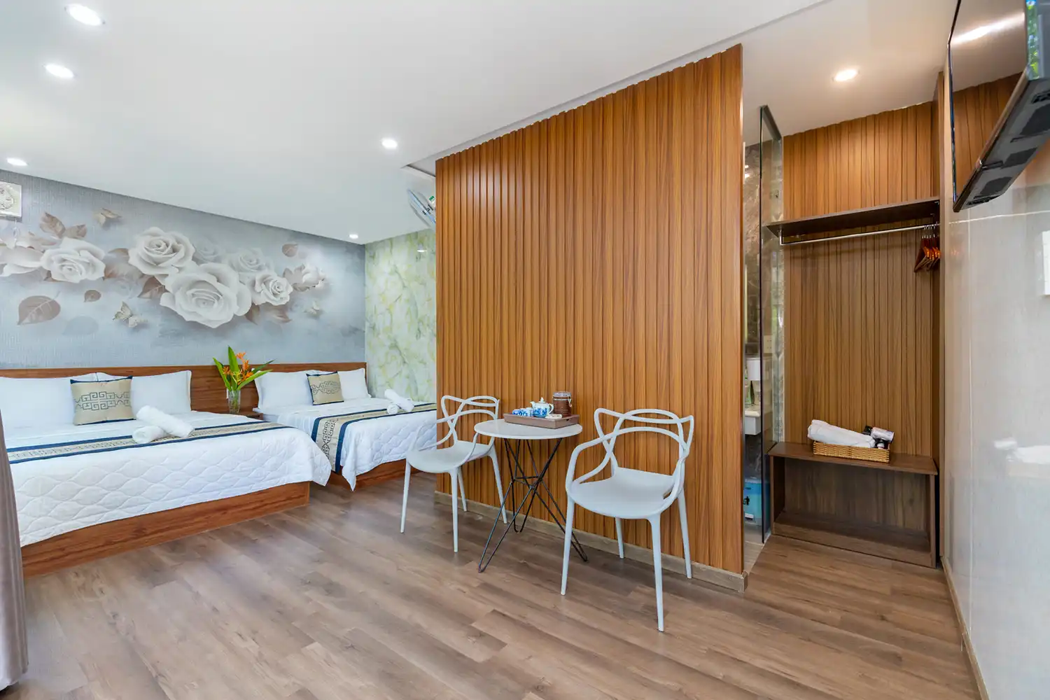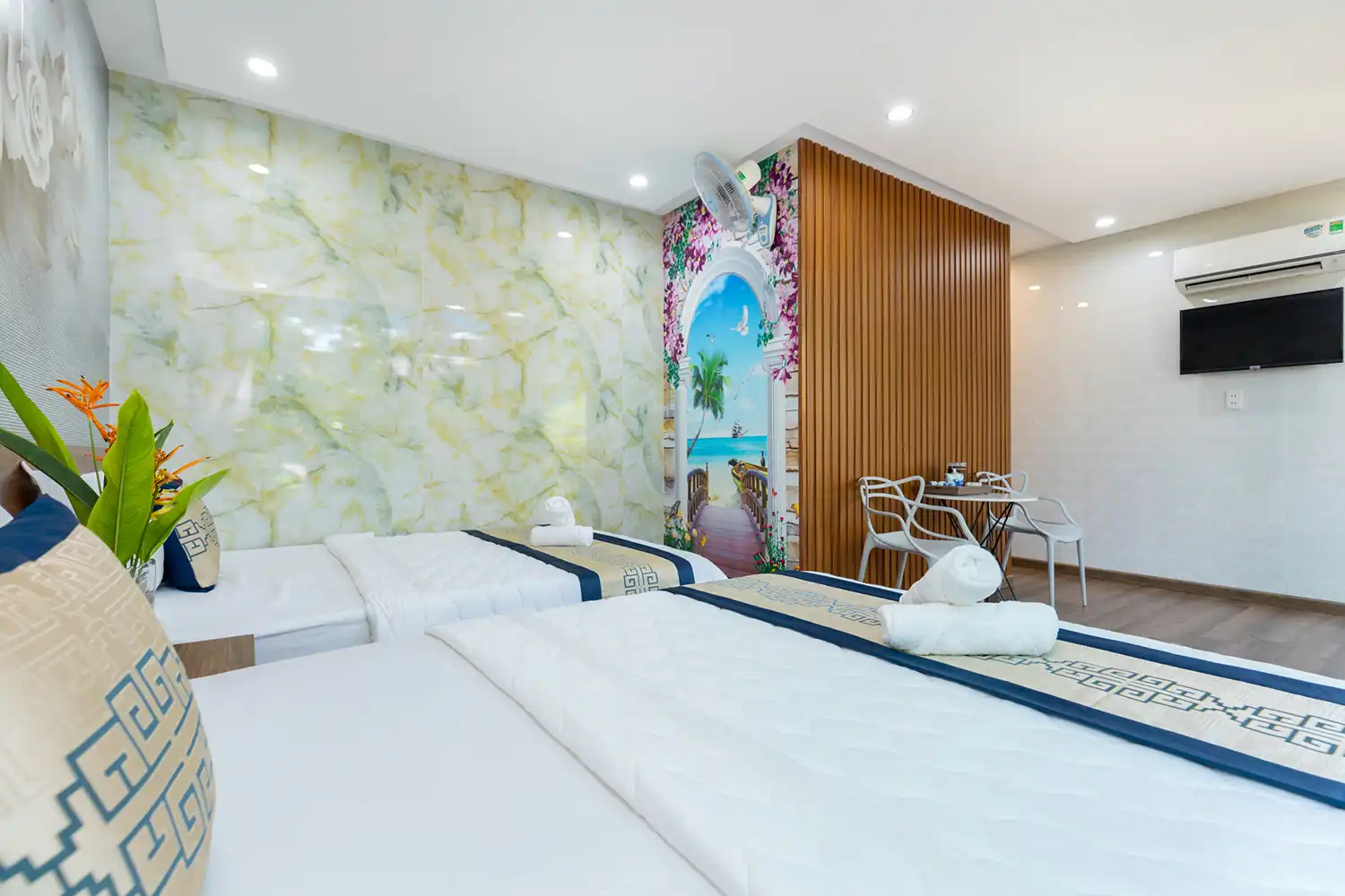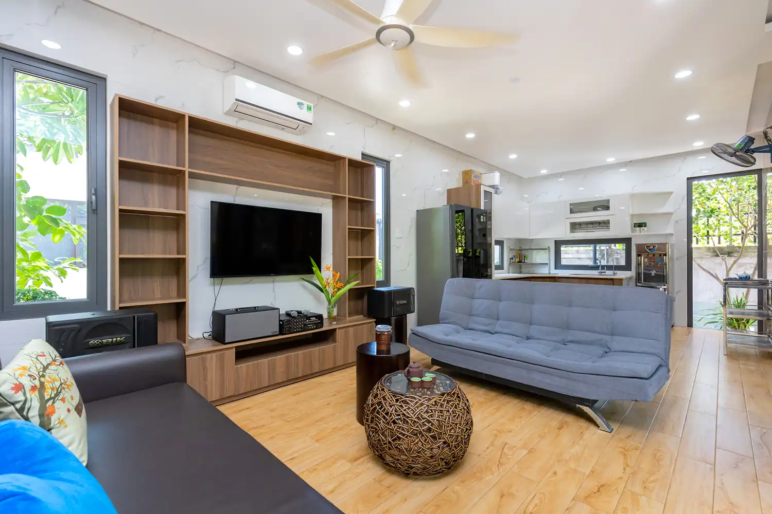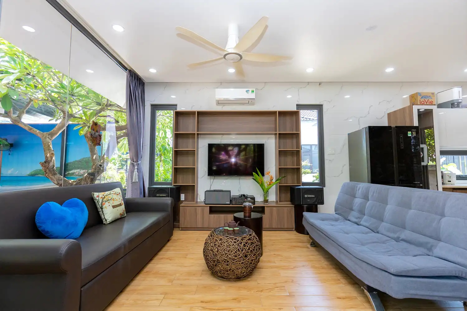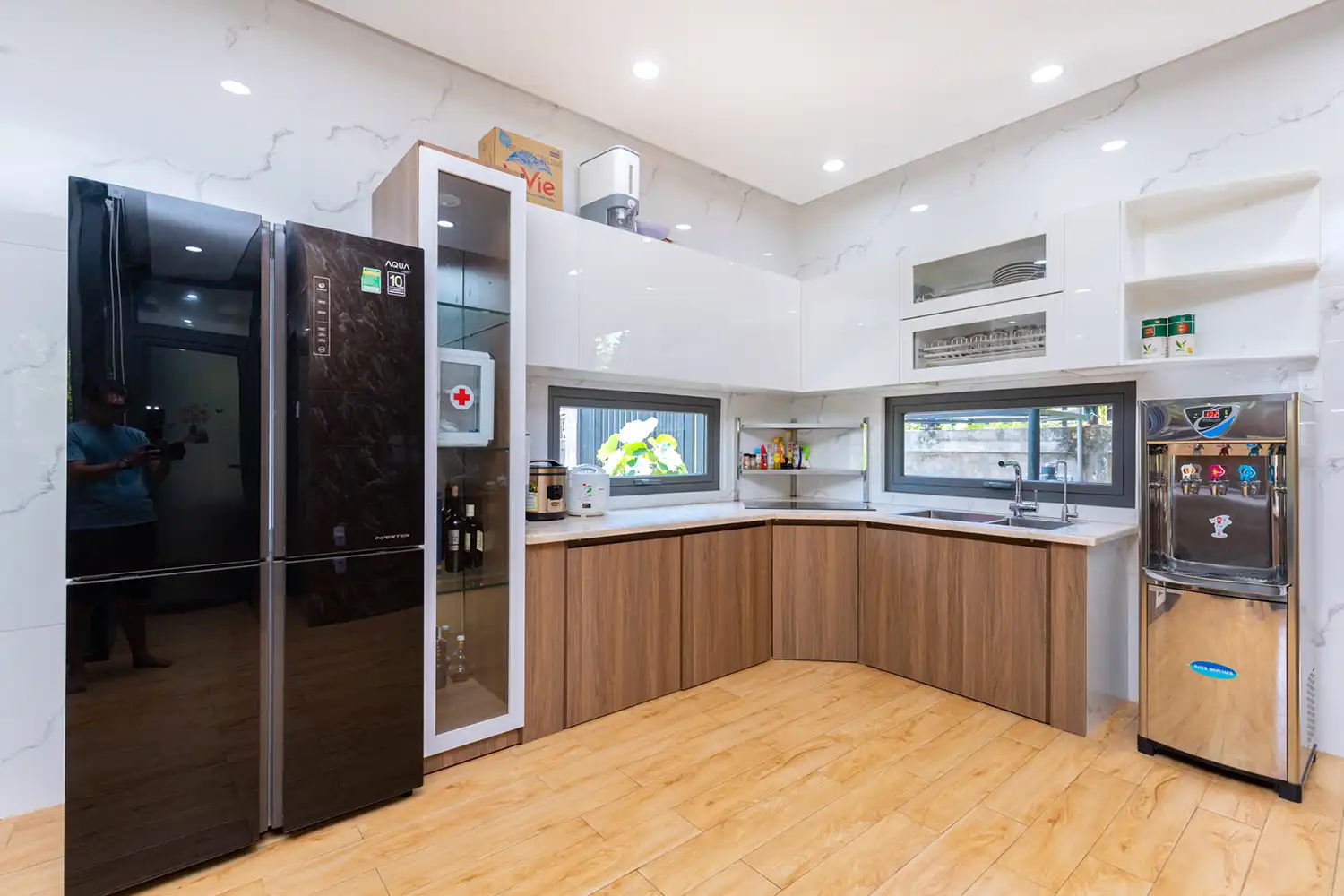 ” Villa sân vườn nghỉ dưỡng PHÙNG GIA tọa lạc tại số 5 đường Nguyễn Đình Tứ, Phường 10, Thành Phố Vũng Tàu, cách bãi tắm Thủy Tiên 5 phút đi bộ. Nghỉ dưỡng tại đây, buổi sáng bạn có thể đi bộ ra bãi Thủy Tiên ngắm bình minh và tắm biển, rồi trở về tắm ở bể bơi nhà mình, tiếp đến là tự tay làm đồ ăn sáng rồi đu đưa trên ghế mây cafe ngắm vườn cây cảnh cùng bầy cá Koi … . Chiều tối là thời điểm lý tưởng để ngắm hoàng hôn ở bãi trước, bạn có thể đi sớm hơn để thưởng thức các món hải sản tươi sống ở các nhà hàng trung tâm rồi CĂN giờ để ra bãi trước ngồi cafe hoặc đi dạo dọc bờ kè để ngắm hoàng hôn … Thật Sảng Khoái “